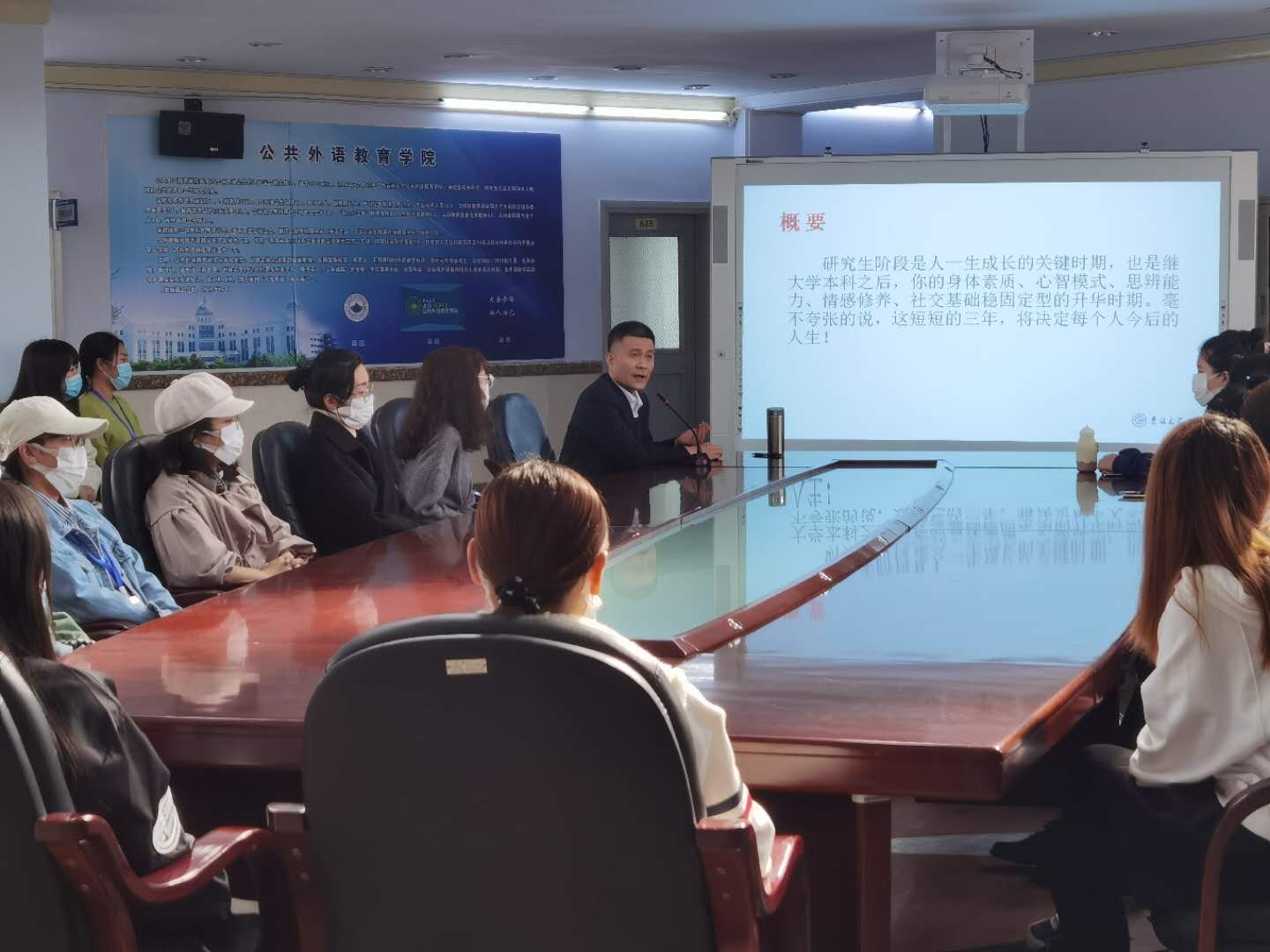 2020921日下午公共外语教育学院贺强书记为2020级全体硕士、博士研究生新生做“如何有意义的度过研究生生活”的思想政治教育及心理安全教育主题讲座。