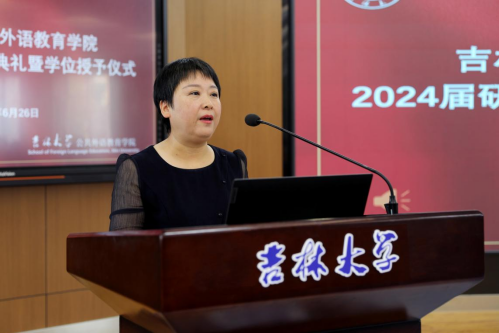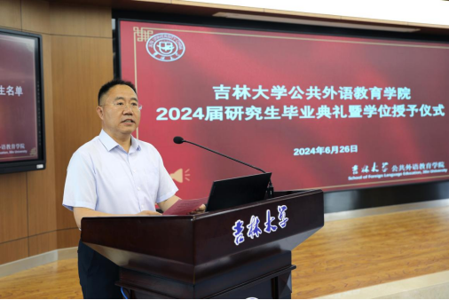 公共外语教育学院院长潘海英教授、学院学术委员会主任张凤娟教授、副院长杜中全教授、张锦教授、党委副书记徐杰、副院长沈斌、研究生导师代表吴宪忠教授研究生辅导员林明帅等出席,2024届毕业研究生及部分家长代表参加。典礼由学院党委副书记徐杰主持。