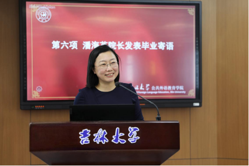 潘海英院长发表毕业寄语潘院长提到当今世界正处于百年未有之大变局,这意味着新时代外语人成长于一个充满着不确定性的时代,一个充满着变革与更新的时代。大家需要去拥抱、顺应并推进这种变革。一方面,要坚持外语教育的人文学科属性;另一方面,顺应时代趋势,应用人工智能,努力将自己培养成富有竞争力的复合型外语人才。潘院长寄语全体毕业生:在未来的生活中理性看待人世间的美与丑,平静面对生活中的得与失,用激情和智慧,把希望化作行动,把梦想变成现实,用才华和努力,描绘出属于自己的星辰大海。