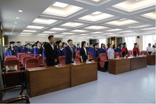 毕业典礼在雄壮的国歌声中拉开序幕,全体师生起立共唱国歌。副院长杜中全教授宣读了2024届研究生毕业生名单。院长潘海英教授和学院学术委员会主任张凤娟教授为毕业生拨穗并授予学位,标志着们圆满完成了研究生阶段的学业