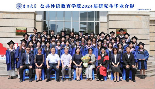 毕业典礼在全体师生齐唱吉林大学校歌中圆满落幕所有参加仪式的师生在外语楼前合影留念。