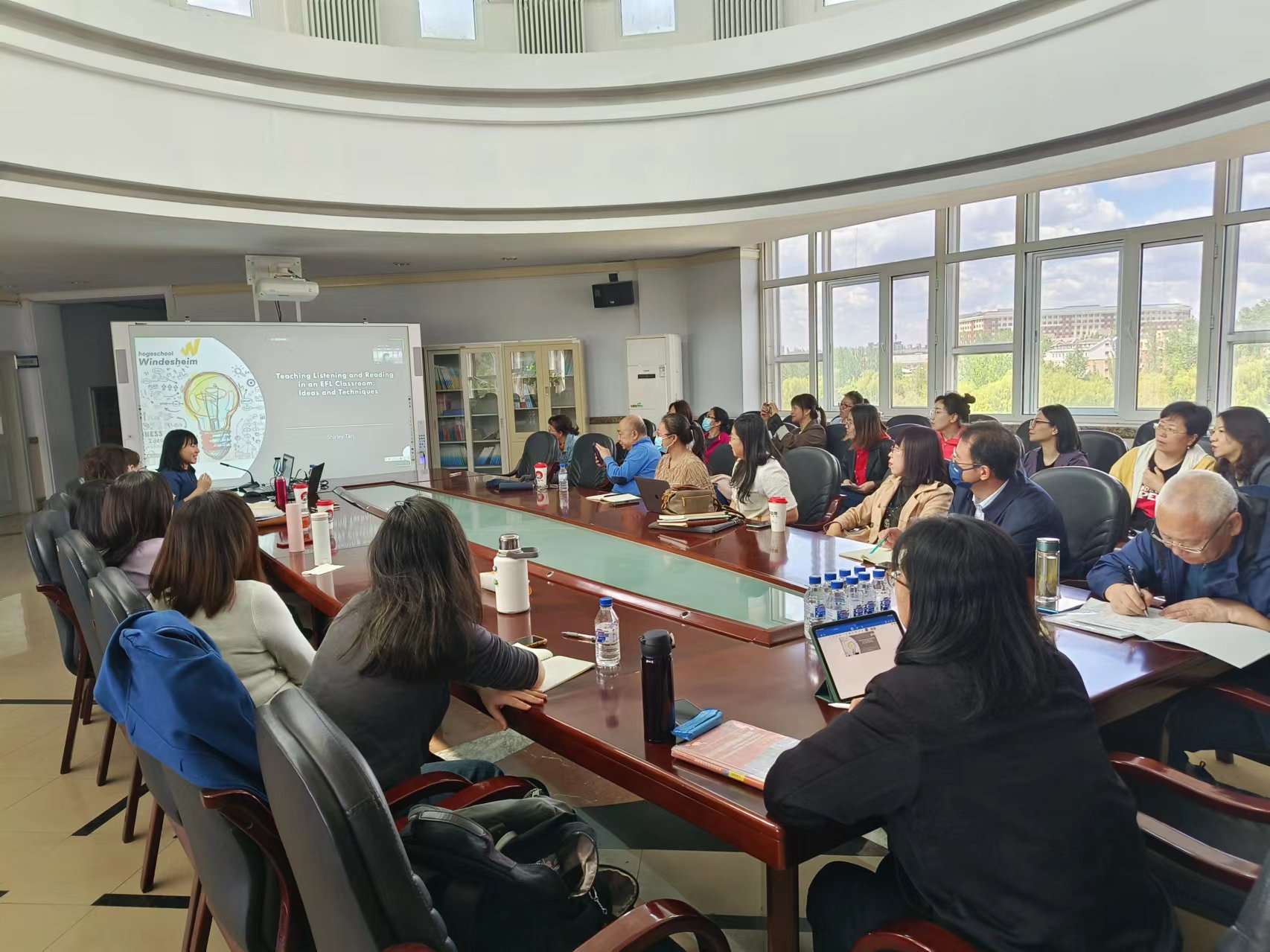 为持续提升课堂教学质量,我院邀请荷兰温德斯海姆应用科学大学Sui Lin Goei教授和Shirley Tan博士于2024年5月13日-18日来访我院并对我院大学英语教师进行教师专业发展培训。5月15日上午,两位专家在外语楼六楼报告厅分别做了题为“国际课例研究最新理论与实践”和“提升EFL课堂中听力和阅读教学的理念与技巧”的专题讲座。公共外语教育学院院长潘海英教授出席讲座,学院部分教师和学生代表参加了讲座,腾讯会议同步直播。讲座由我院大学英语第一教研室主任云天英教授主持。
